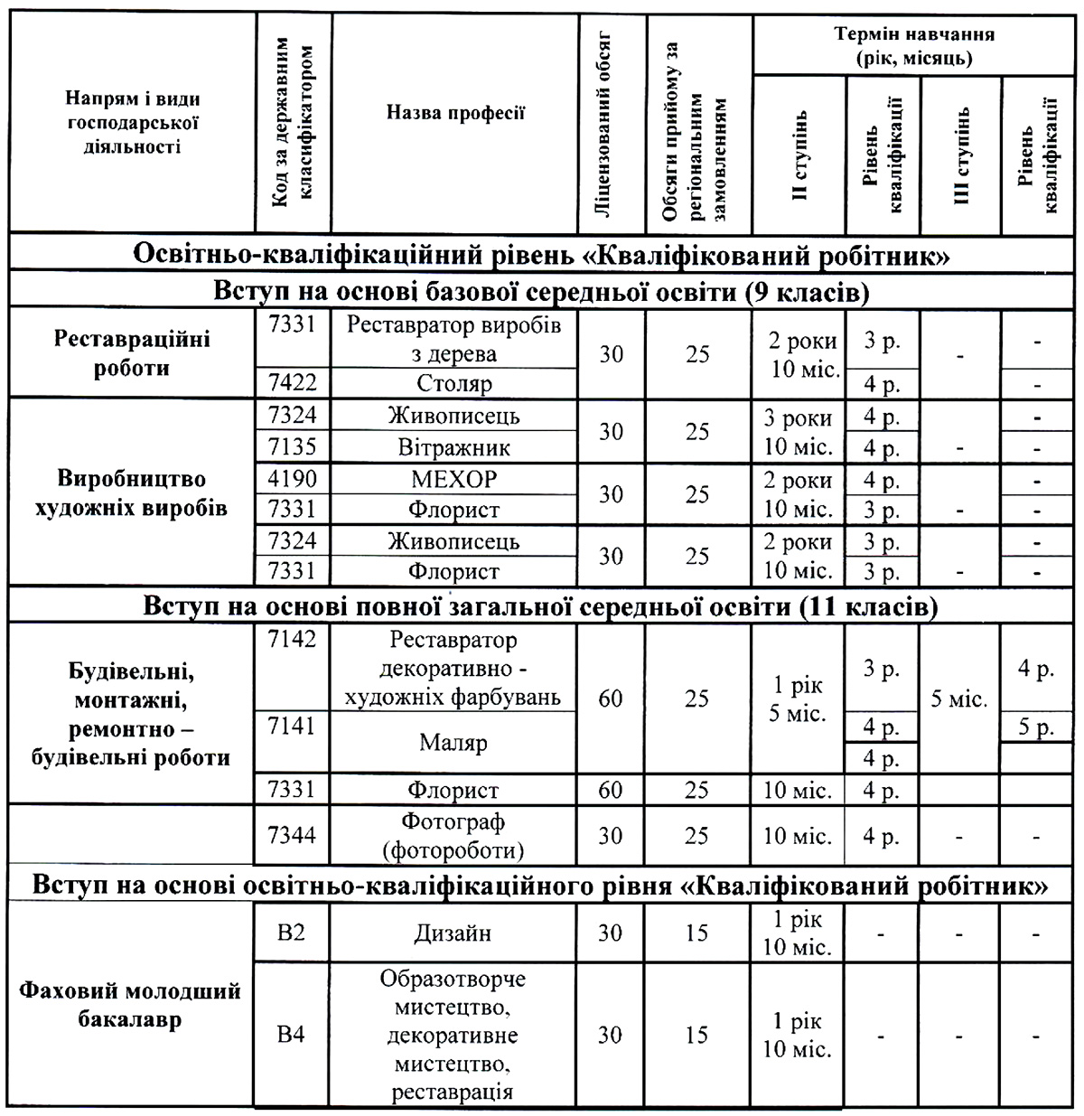 - на спеціальність В2 Дизайн — творчий конкурс.
