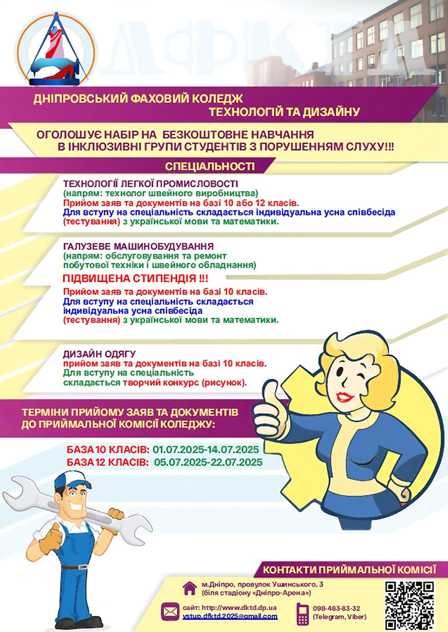 Контакти:тел.: +38 096 399 37 00 — приймальна комісія