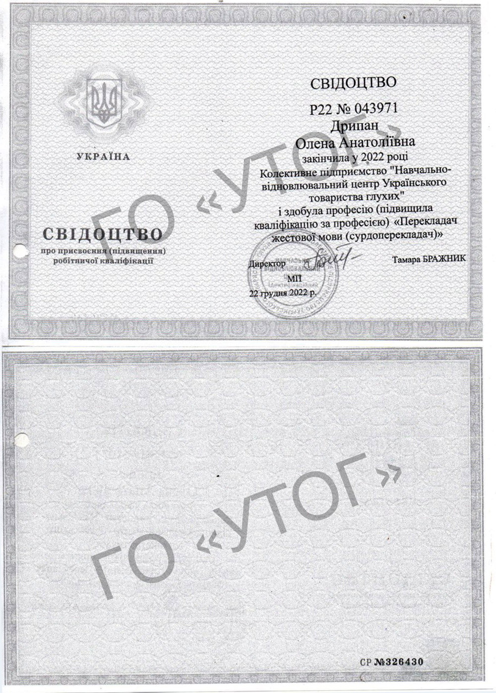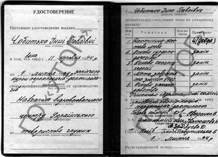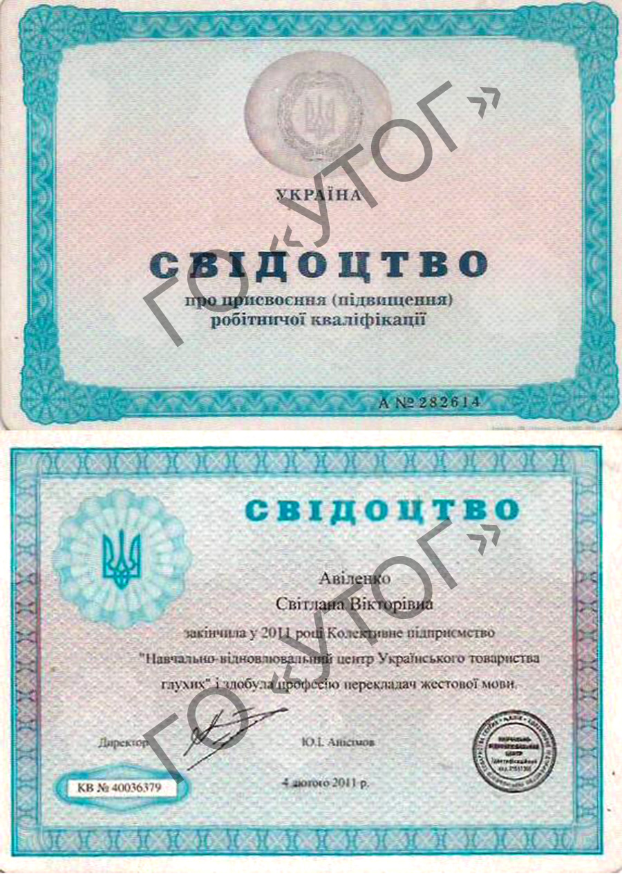 | Прізвище, ім'я та по батькові перекладача жестової мови | Посилання на документ, що засвідчує кваліфікацію перекладача жестової мови |