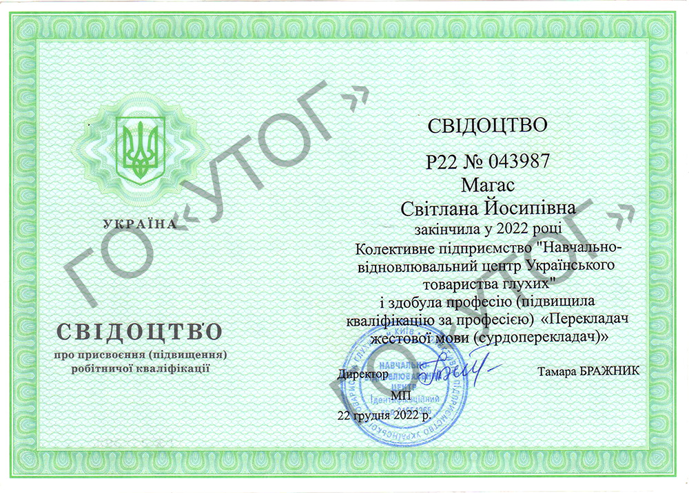 | Професійна та освітня кваліфікація перекладачів жестової мови | |