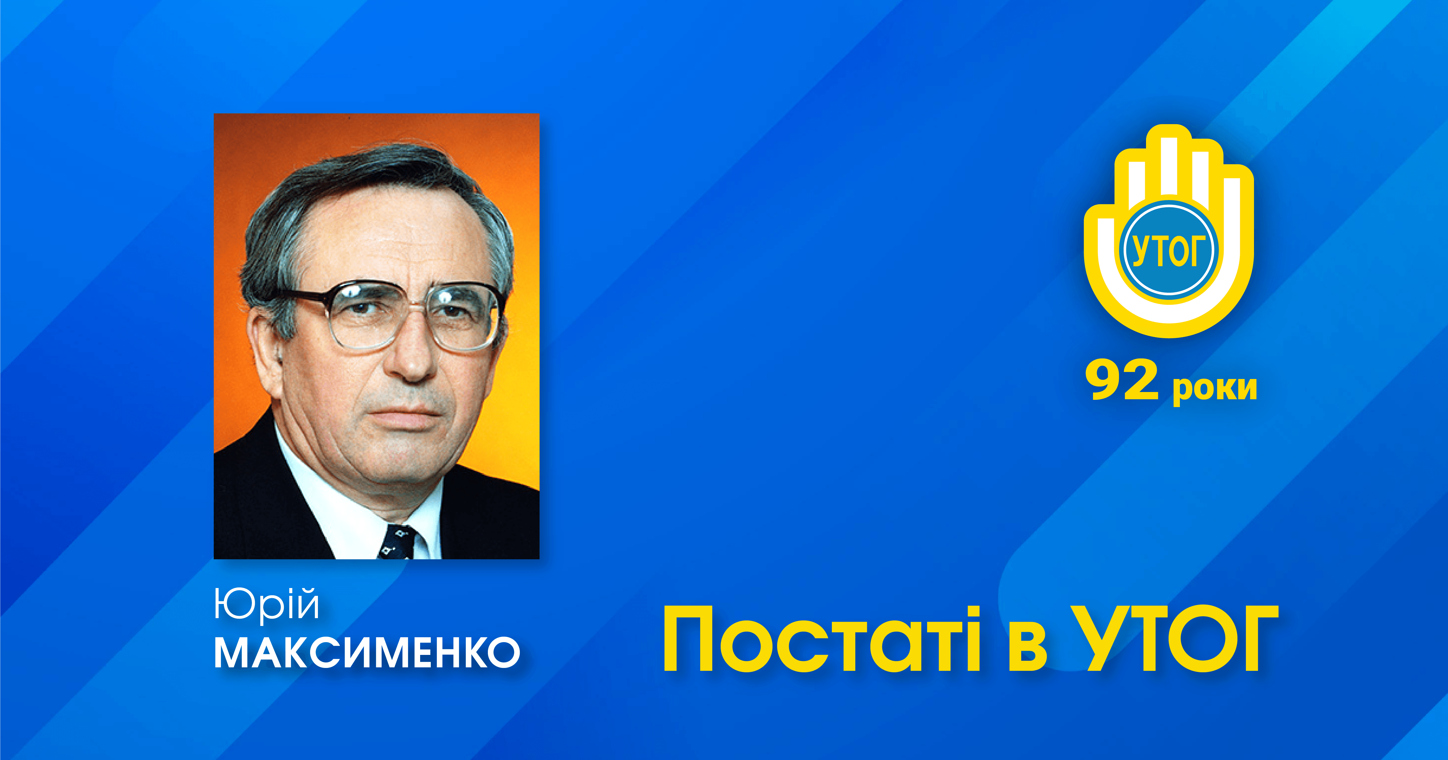 МАКСИМЕНКО Юрій Петрович — втратив слух у юнацькому віці. Закінчив Рибінський авіаційний технікум і Київський технологічний інститут легкої промисловості. Працював на інженерних посадах на Київському УВК №1 УТОГ, потім перейшов на роботу в ЦП УТОГ. У 1987-2016 роках очолював наше Товариство і на посаді голови УТОГ багато зробив для зміцнення та збереження УТОГ, його підприємств і організацій. Завдяки Юрію Петровичу глухі спеціалісти висувалися на керівні посади, зростали професійно і стверджувалися як особистості. Максименко був літературно обдарованою людиною, писав вірші. Ініціював багато заходів в УТОГ, зокрема конкурси «Ерудит», «Ігри патріотів УТОГ», «Міс УТОГ», конкурси перекладачів жестової мови, видання збірок і довідників таких як «Страна УТОГ», «Книга рекордів УТОГ» тощо.